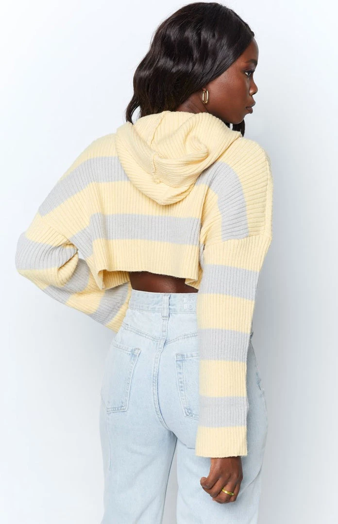 Beginning Boutique Outerwear College Striped Hooded Jumper Yellow