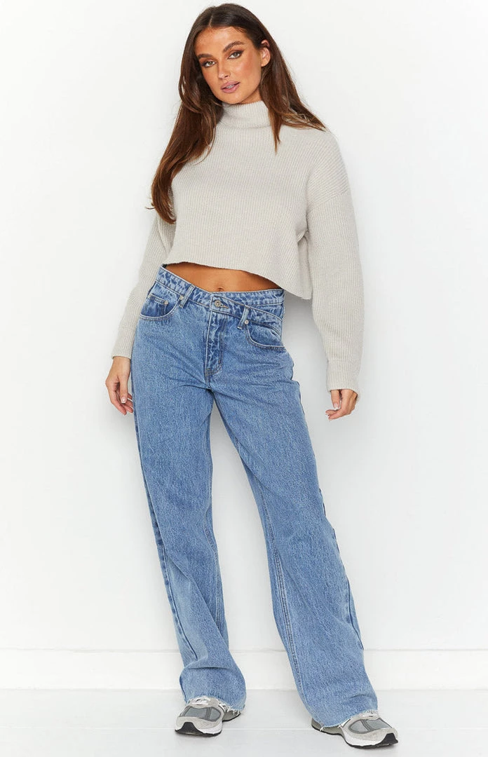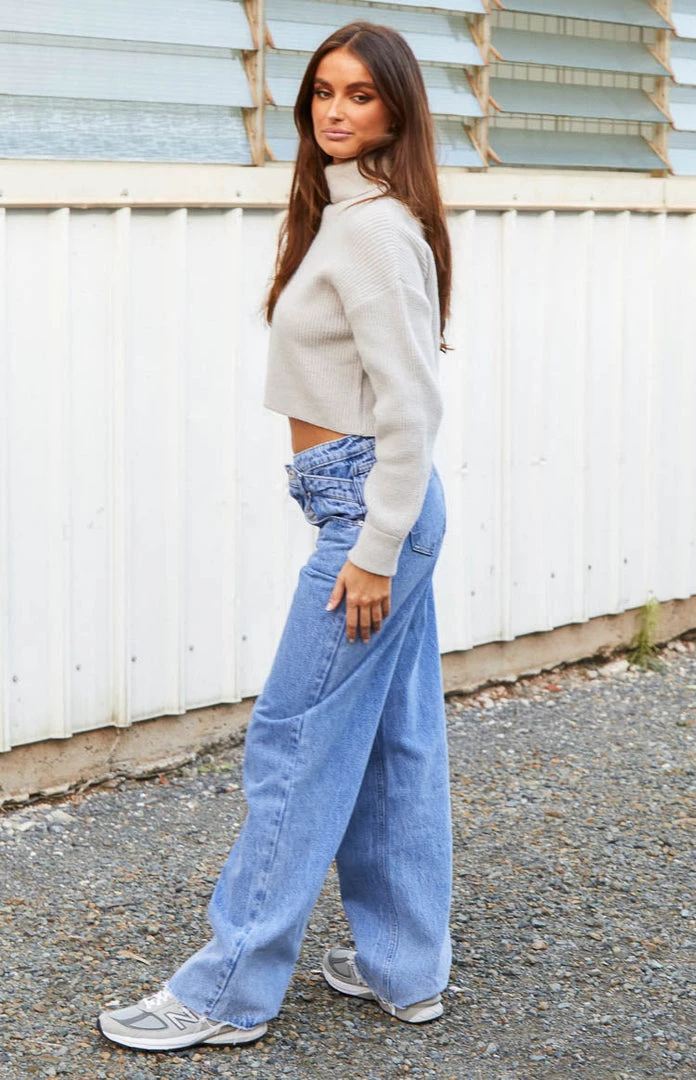 - Cropped sweaters are perfect if you’re looking for a trendy fit in the cooler season. This grey sweater with high waisted jeans, boots and a bag has your next everyday outfit organised!
