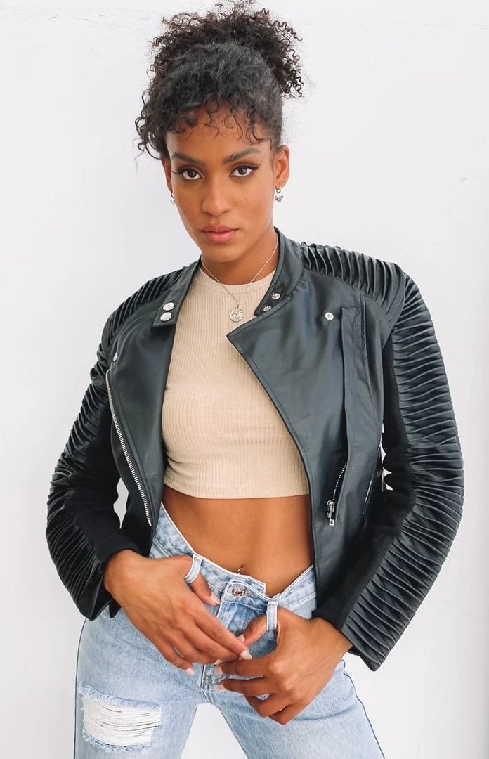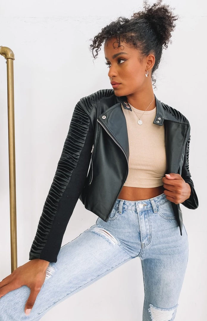 Beginning Boutique Outerwear Picture This Ribbed Sleeve Jacket Black PU