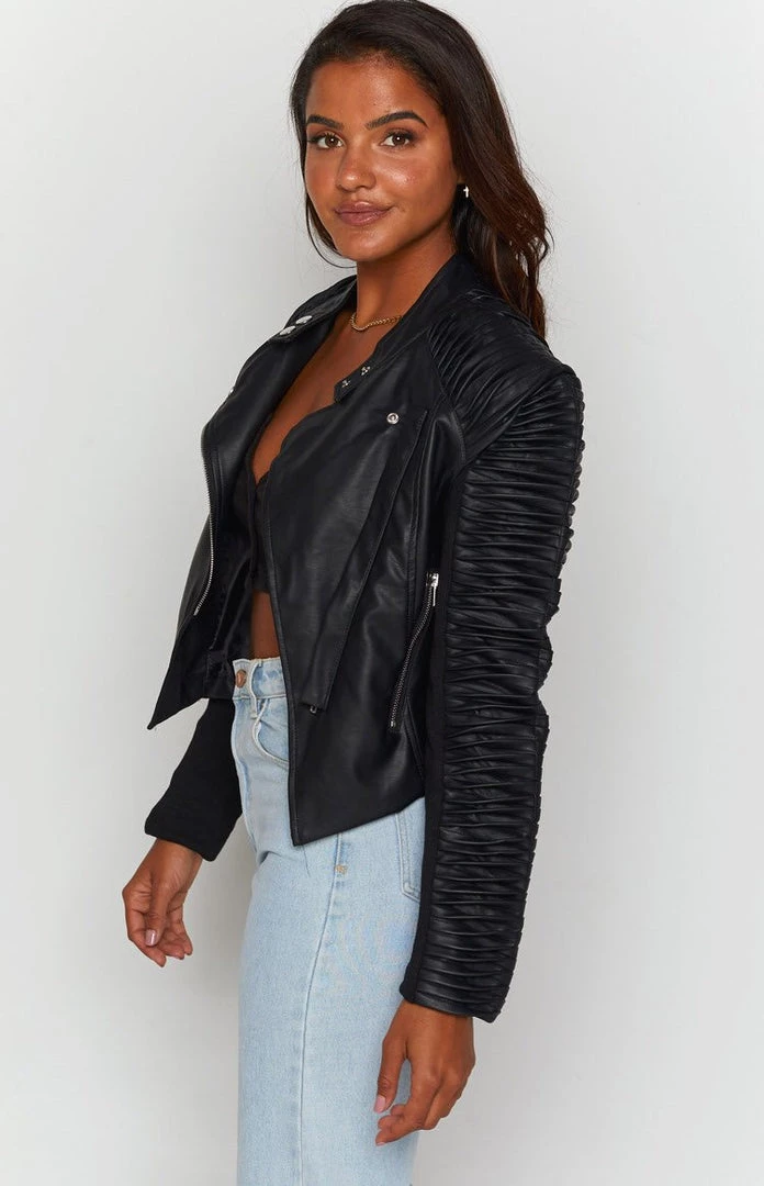 Be the first to review “Beginning Boutique Outerwear Picture This Ribbed Sleeve Jacket Black PU” Cancel reply