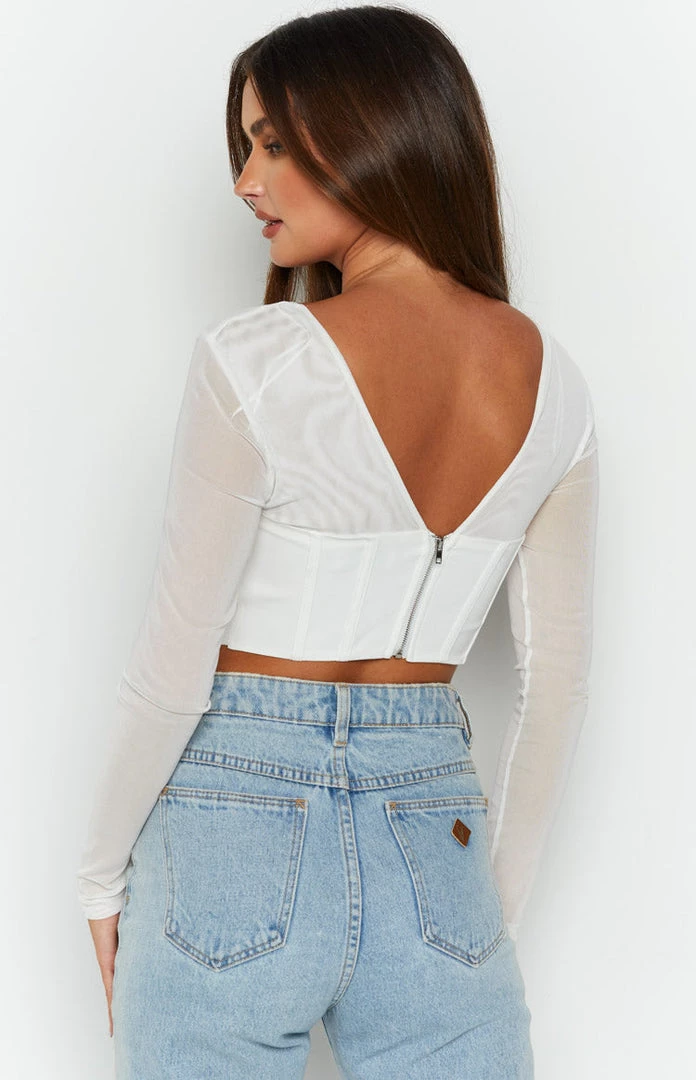 - We are loving this corset long sleeve top! Pair with jeans and heels for a night time look! Elevate your look with a black shoulder bag and gold jewellery!