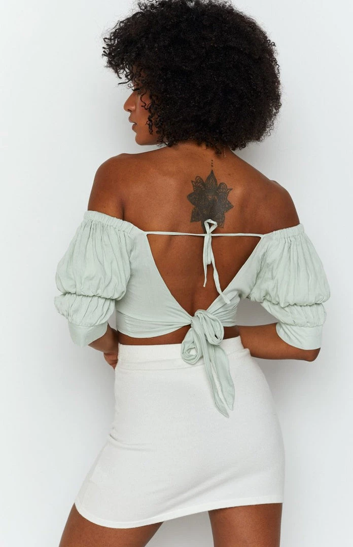 Beginning Boutique Tiana Puff Sleeve Crop Sage