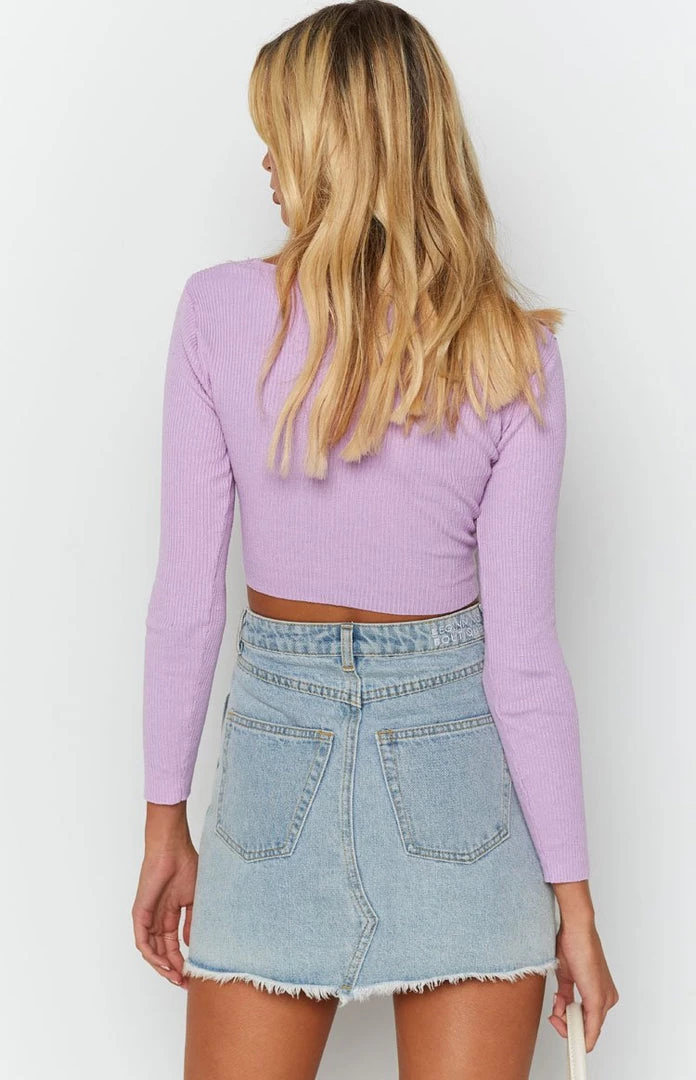 The Alyssia Knit Top Lilac is some serious wardrobe staple goals! This super-soft ribbed top is so comfortable you’ll never want to take it off – and is so versatile, you won’t have to! Style this long sleeve crop top with high waisted denim shorts and a low heel for a cool weekend look or jeans and sneakers for a comfortable Uni outfit.