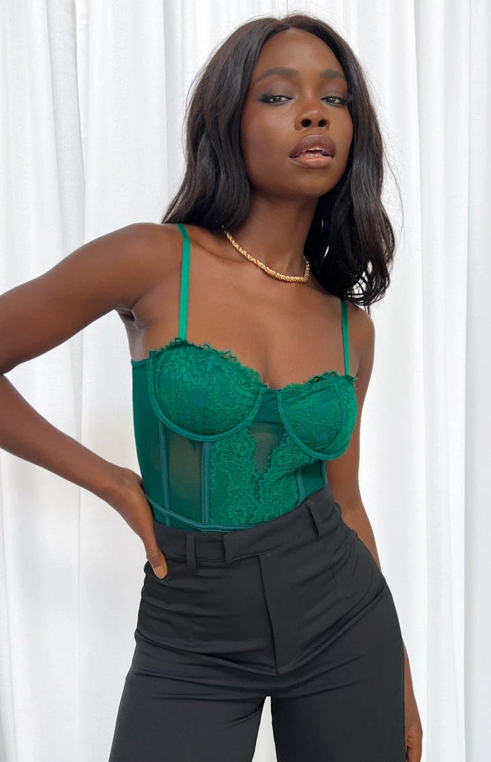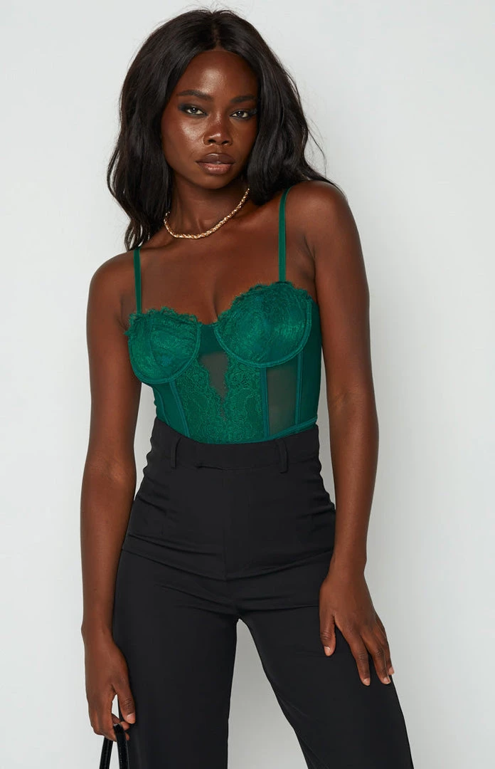 Beginning Boutique Tops Caress Green Lace Bodysuit