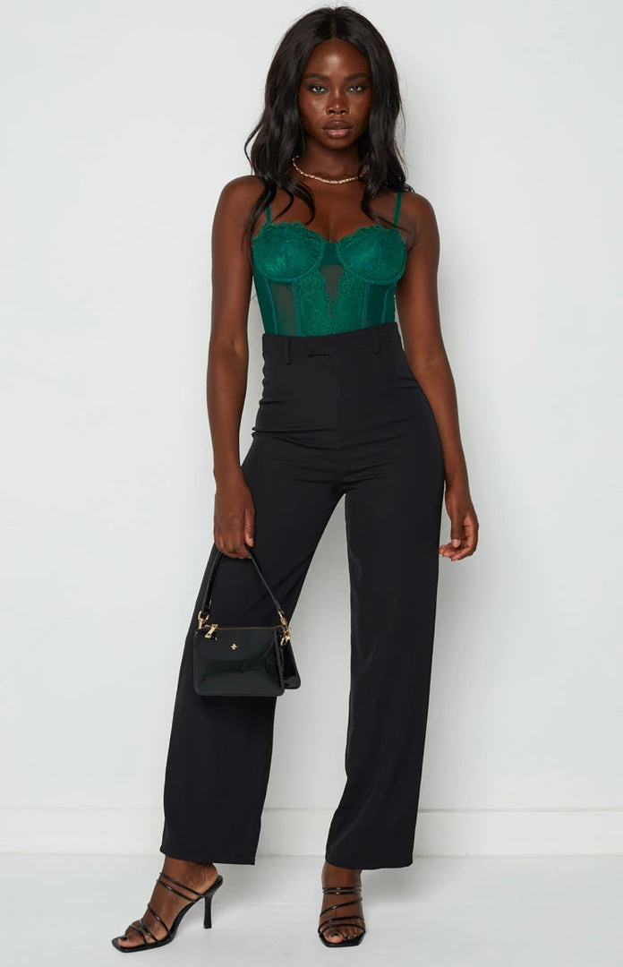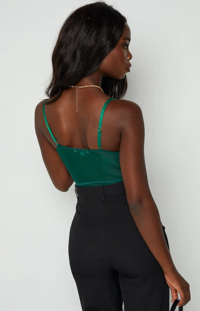 - This green bodysuit is a statement piece that is sure to impress! Pair with some pants and heels for the perfect outfit!