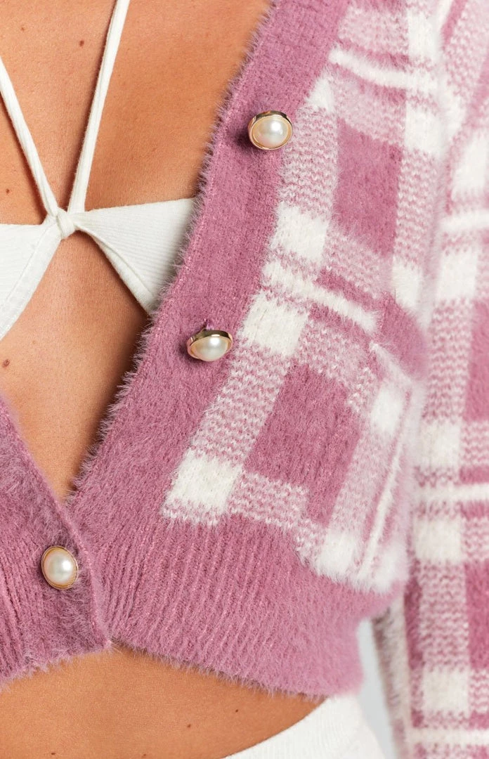 Beginning Boutique Tops Hannah Checked Cardigan Purple