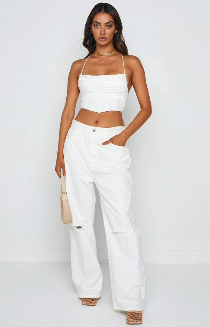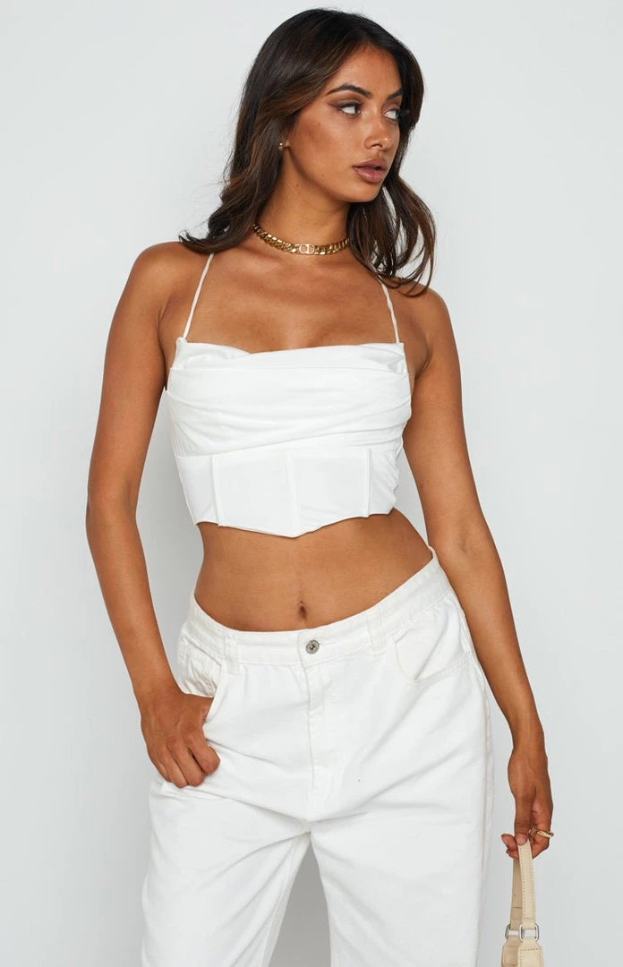 Beginning Boutique Tops Kelsie White Corset Crop Top