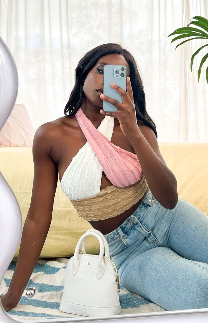 - This halter is giving us Neapolitan ice cream vibes and we totally love it! Complete your look with denim jeans and sneakers and you will be set to go out for a cute lunch with the gals