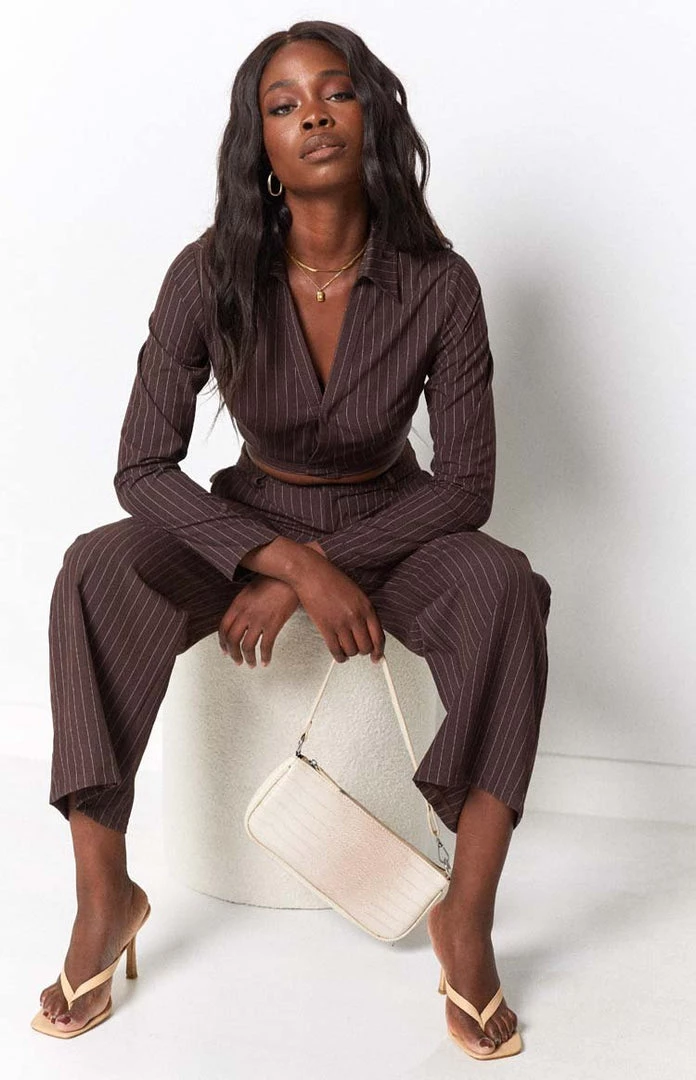 Be the first to review “Beginning Boutique Tops Sinner Pinstripe Shirt Brown” Cancel reply
