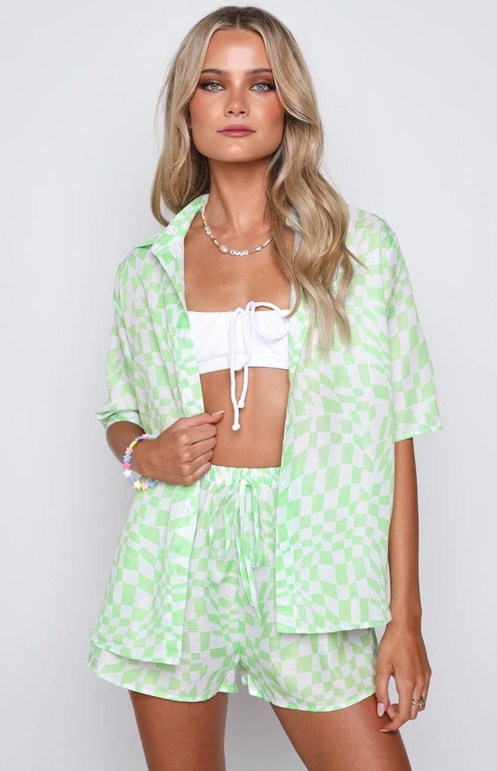 - We love a comfy two piece set! The perfect outfit for lazy days at home or a cute ‘n casj daytime look to the beach. Wear with the matching Toree Green Check Shorts or simply pair with a denim