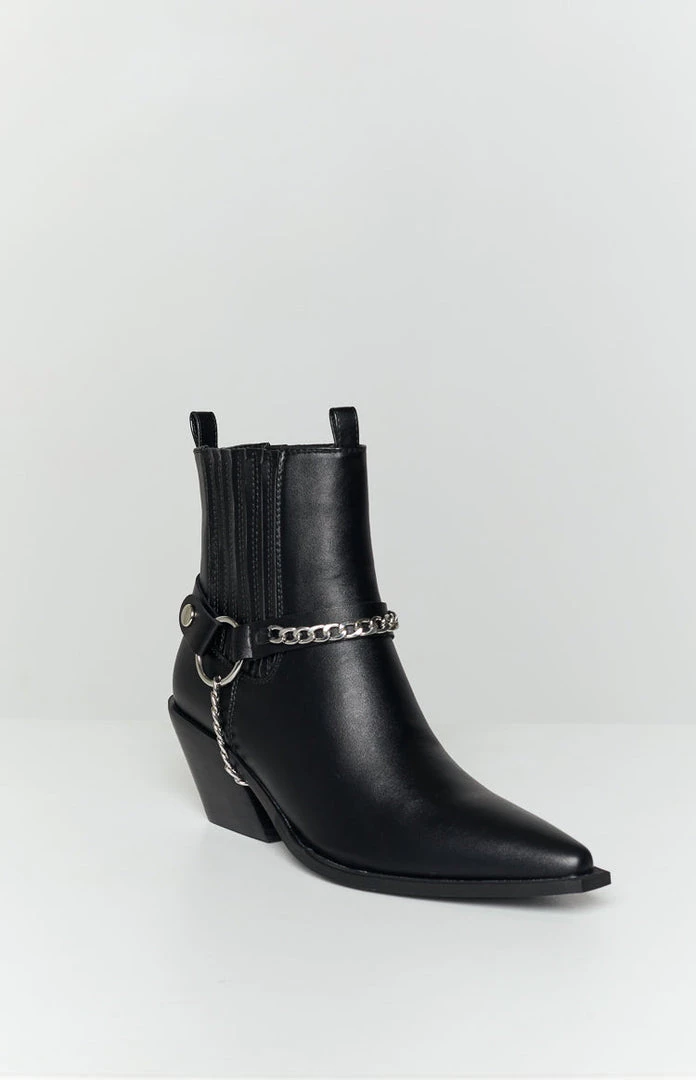 - Make a statement in these western style black boots! Pair with a cute midi dress and a bag to add some fun to your look!