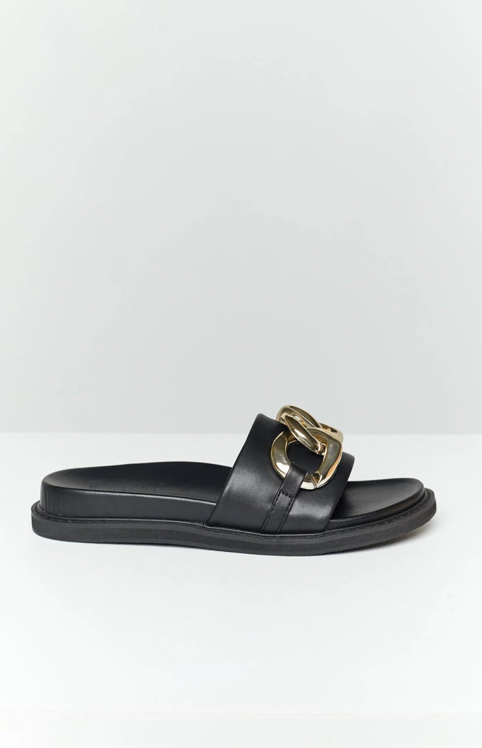 - Need some bling in your life without going too over the top? This slide is for you! Wear with any smart-casual outfit to make it really pop! Pair with a matching black bag and some gold jewellery to complete the look!