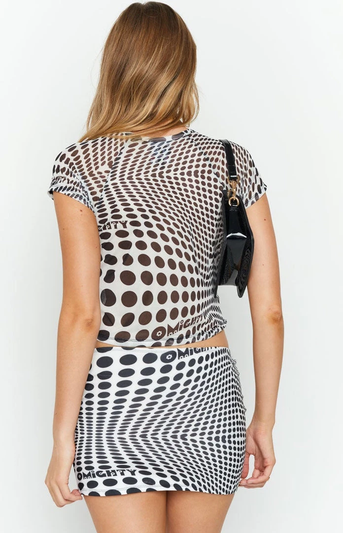 - Unveil your inner party girl in this totally epic mini skirt. Style with the matching OMIGHTY Illusion Mesh Baby Tee Mono for a funky two-piece look, or mix and match with a cute black crop and heels to match – you’re sorted!