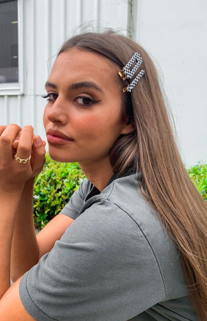 - These cute check clips are perfect for pinning back your hair when styling!