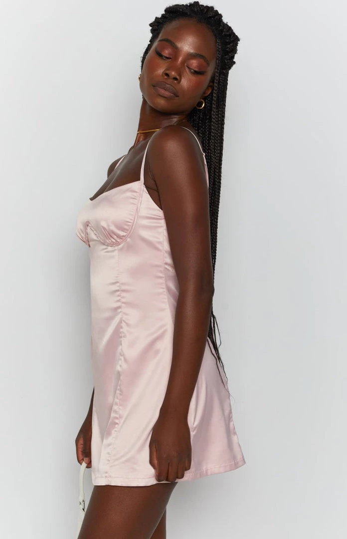 - Looking for the perfect combination of sweet and sexy? This is the dress for you! This silky pink mini is serving us ultimate feminine vintage vibes and we are obsessed! With an ultra-flattering cup detail and backless design, simply pair with a dainty choker and your favourite strappy heels!