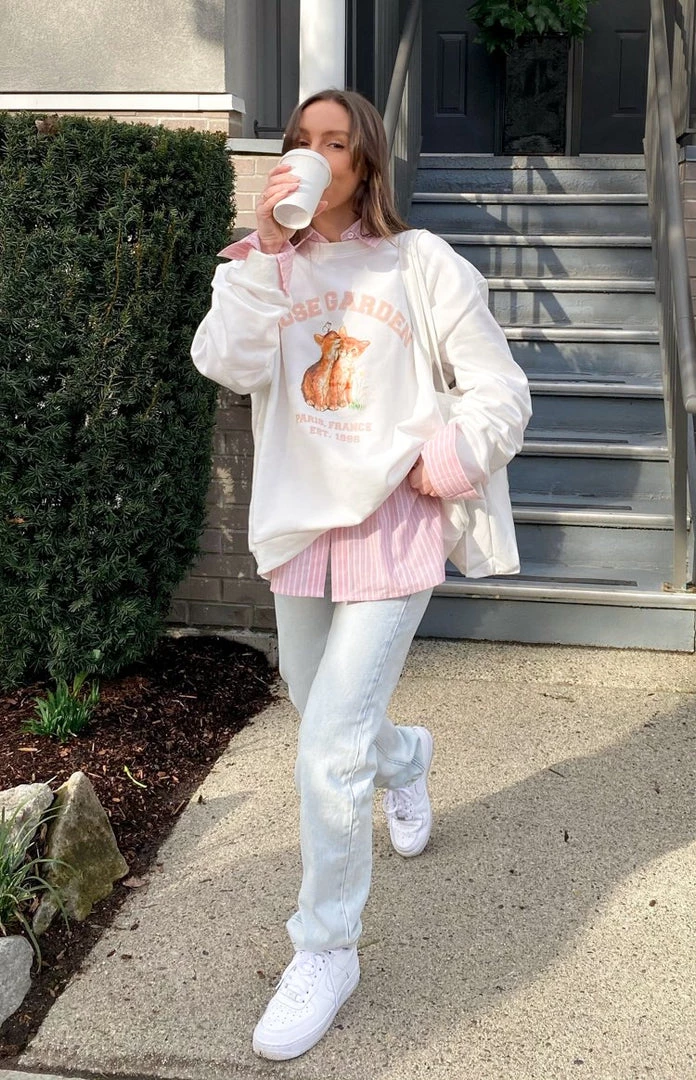 - This super cosy sweater features the cutest kitten print, and we are here for it! Pair with bike shorts or denim bottoms for a casual-cool look, or simply wear around the house with cheeky PJ shorts (or undies) for a rainy movie day!