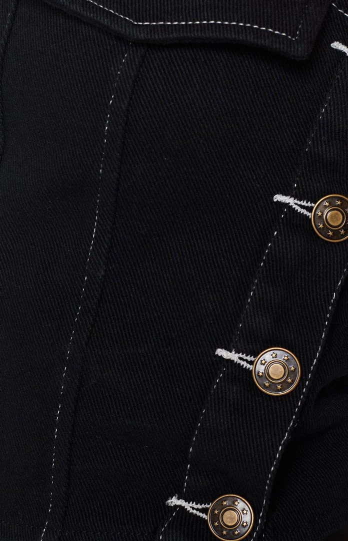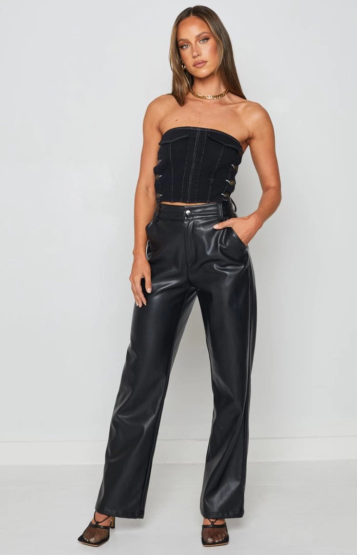 - Lift your street style game with this super chic tube top. Featuring on trend white contrast stitching and button embellishments on the side, this is your new must-have top. Pair with relaxed jeans and black heels to round off the look