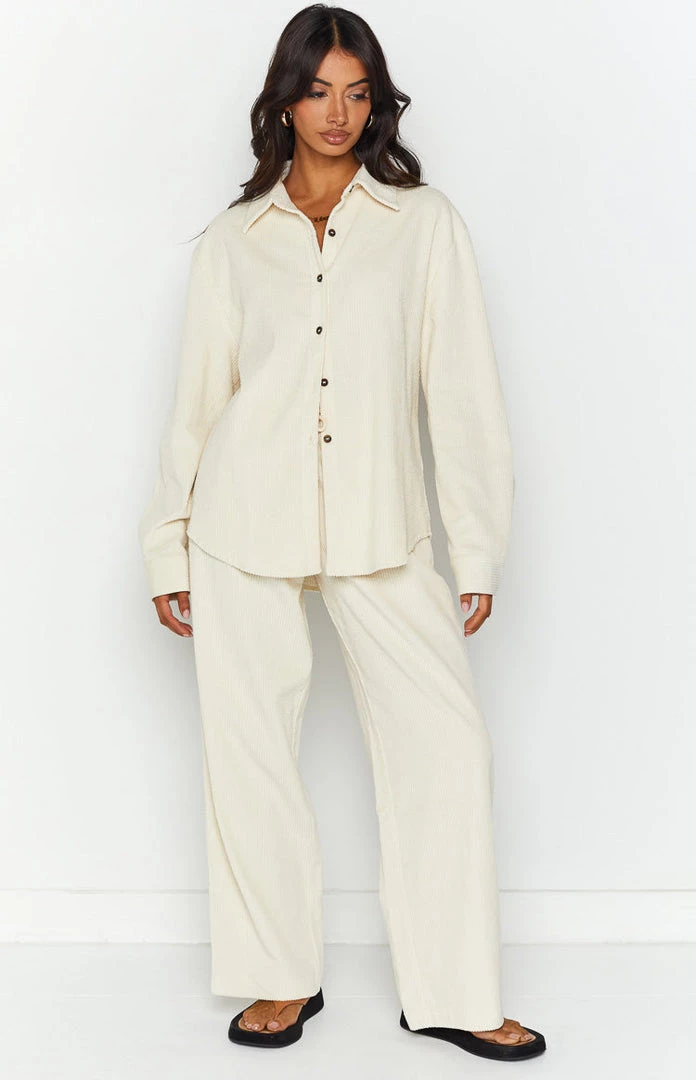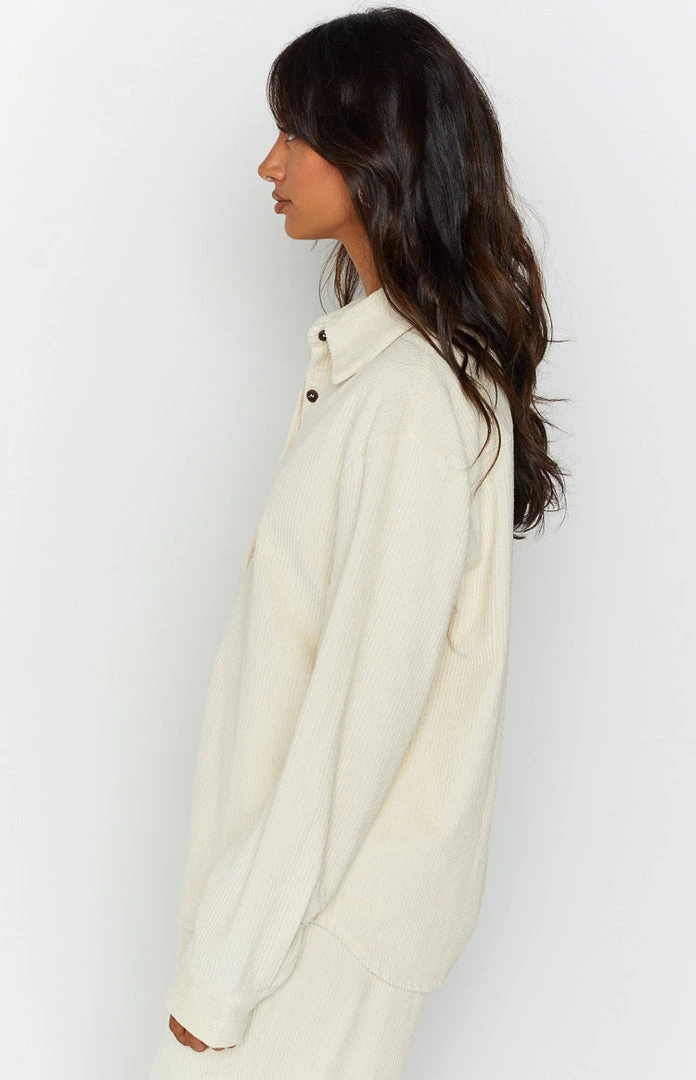 - Cool and collective in this corduroy long sleeved shirt ! This set is great for comfort and looks so stylish in the cooler months. Unbutton the shirt, add a crop top and throw on the Nikita Cord Pants to complete this look. This shirt is also so versatile – can be worn with almost anything!