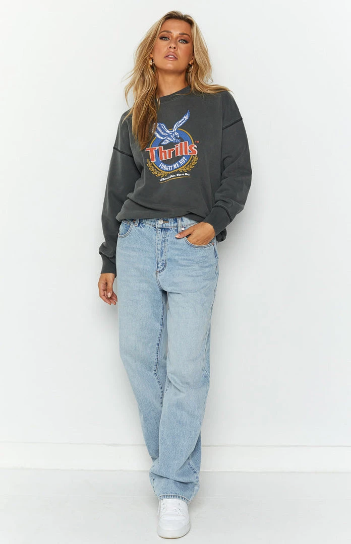 - Thrills Black Slouch Crew Jumper