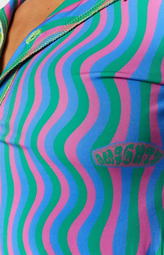 - This colourful shirt is the top you didn’t know you needed! Pair with the matching skirt for a fun two piece vibe or go more casual with baggy jeans and sneakers!