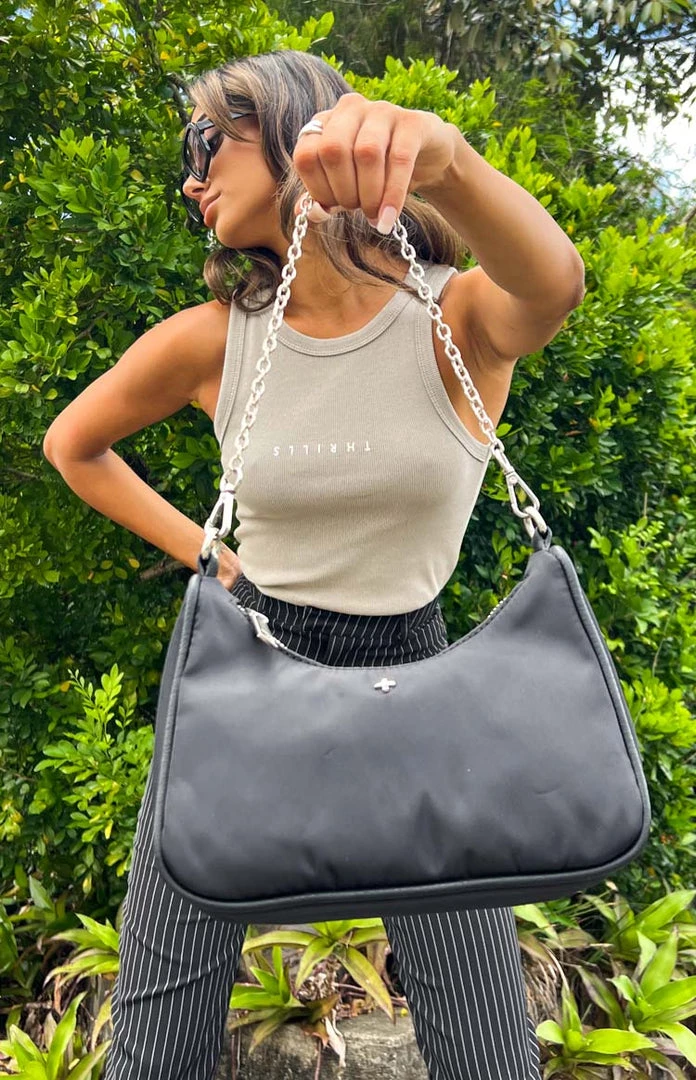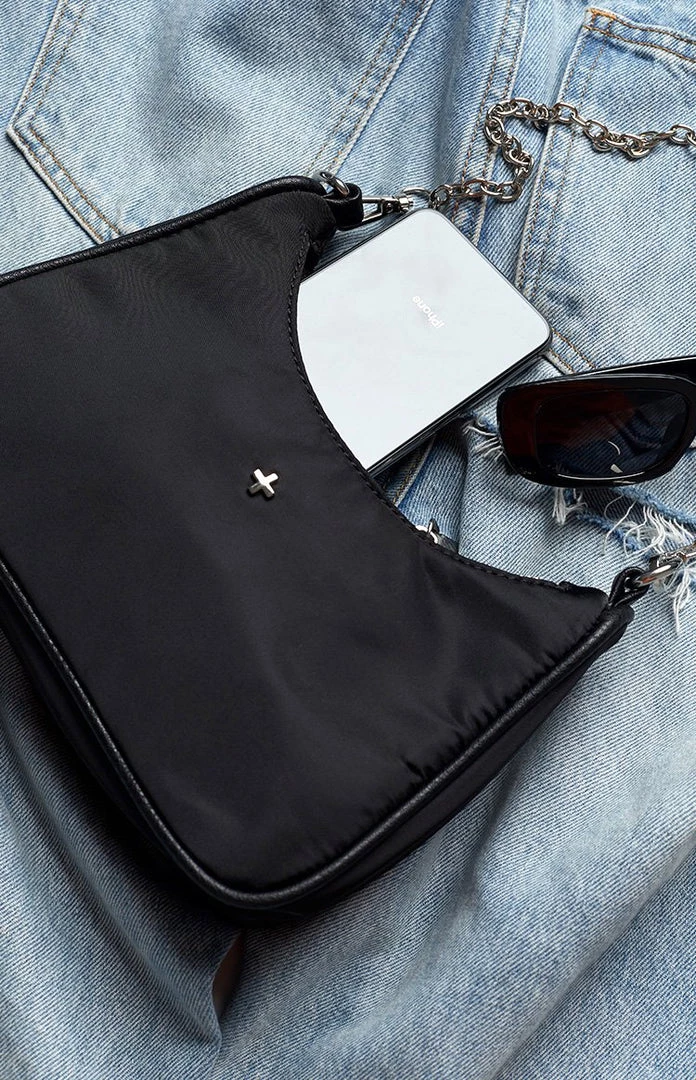 Sometimes simple is more, especially with this Peta + Jane Nylon bag! Take your streetwear style to the next level and pair this little number with a plain white tee, vintage Levi’s and leopard print mules.