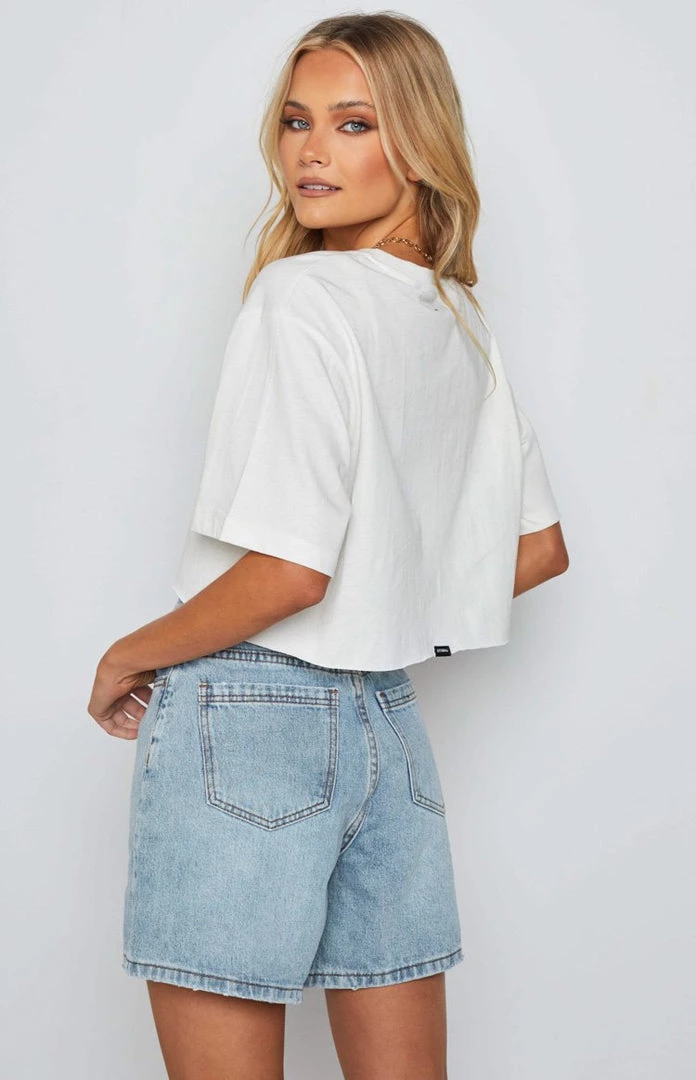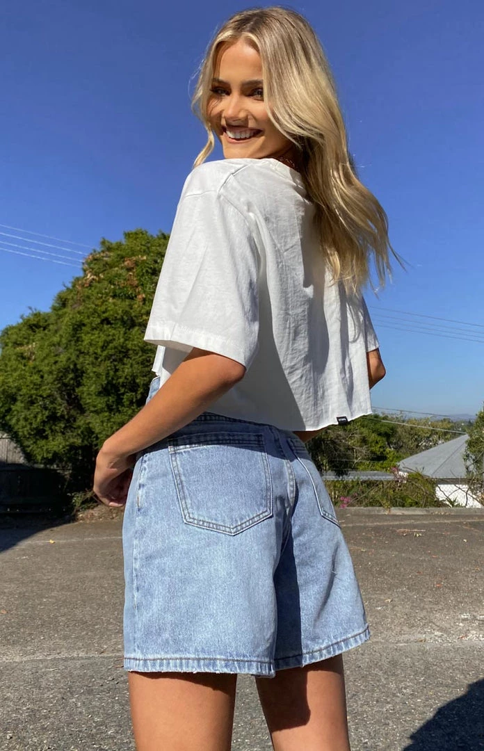 - Your staple summer shorts by Thrills now comes in an aged blue tone. Style with a boyfriend tee for a comfy, casual look or a colourful crop and heels to dress it up