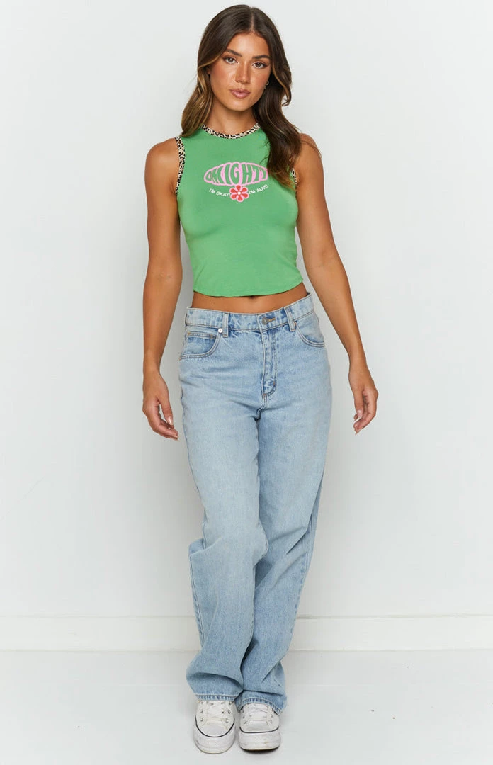 - We are obsessed with this green tank! Pair with shorts and a tote for a chill day out or mix it up with a mini skirt and heels!